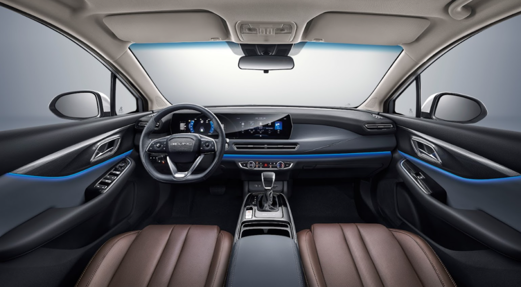Su interior se destaca por su amplitud, ofreciendo un espacio confortable para todos los ocupantes. Equipado con una pantalla táctil de 12.3 pulgadas y un clúster LCD de 7 pulgadas, el vehículo proporciona una interfaz moderna y fácil de usar. Los asientos de imitación piel, el aire acondicionado automático, y el control de crucero aseguran una experiencia de conducción cómoda y lujosa. Además, cuenta con conectividad Bluetooth, puertos USB, y una toma de corriente de 12V, lo que garantiza que los pasajeros se mantengan conectados y sus dispositivos cargados durante el viaje.