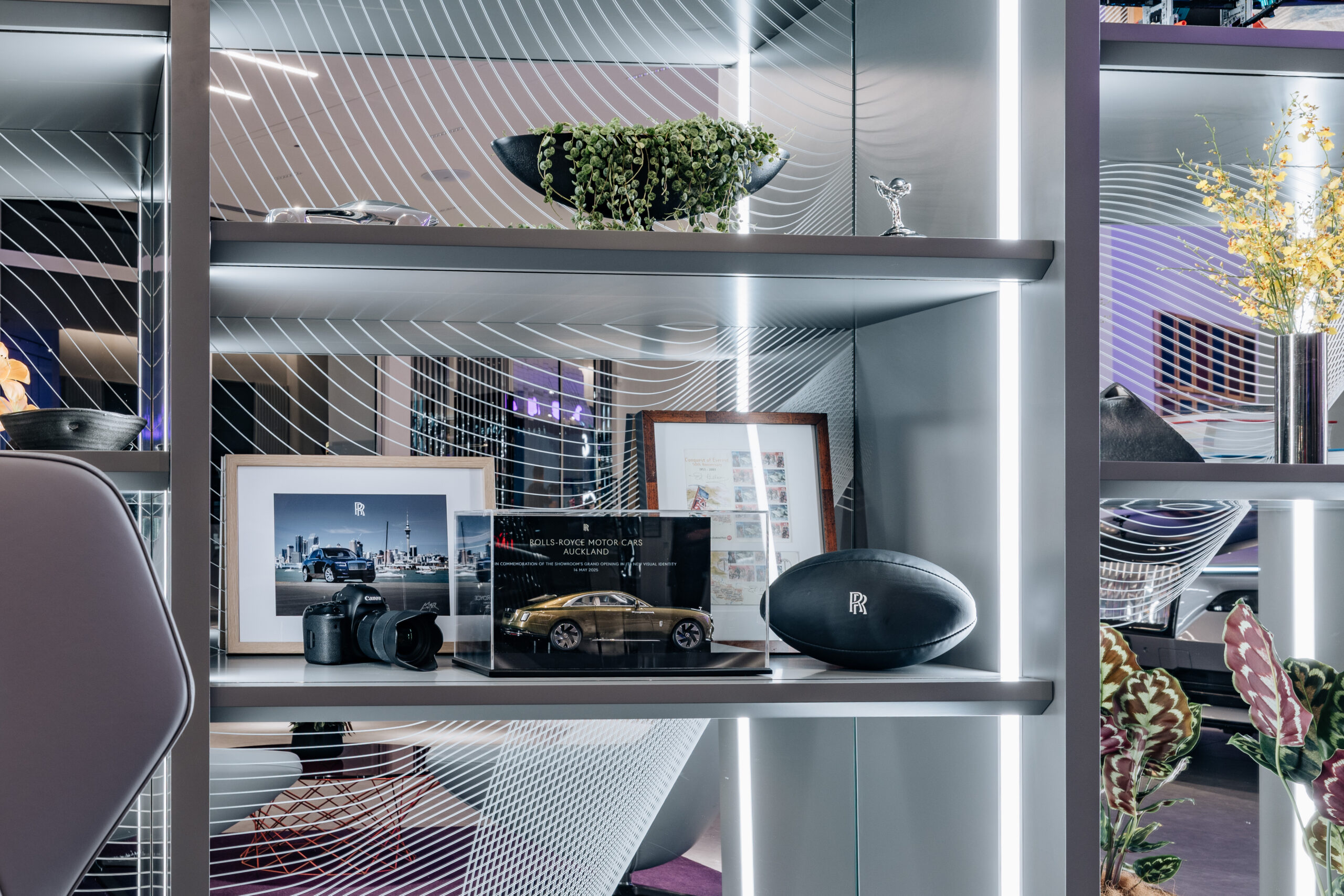 Como complemento, se ha instalado un gabinete curatorial con piezas de arte y diseño neozelandés. La intención es generar un punto de encuentro entre el universo de Rolls-Royce y el contexto cultural del país, fomentando una experiencia más cercana e inspiradora para el visitante.