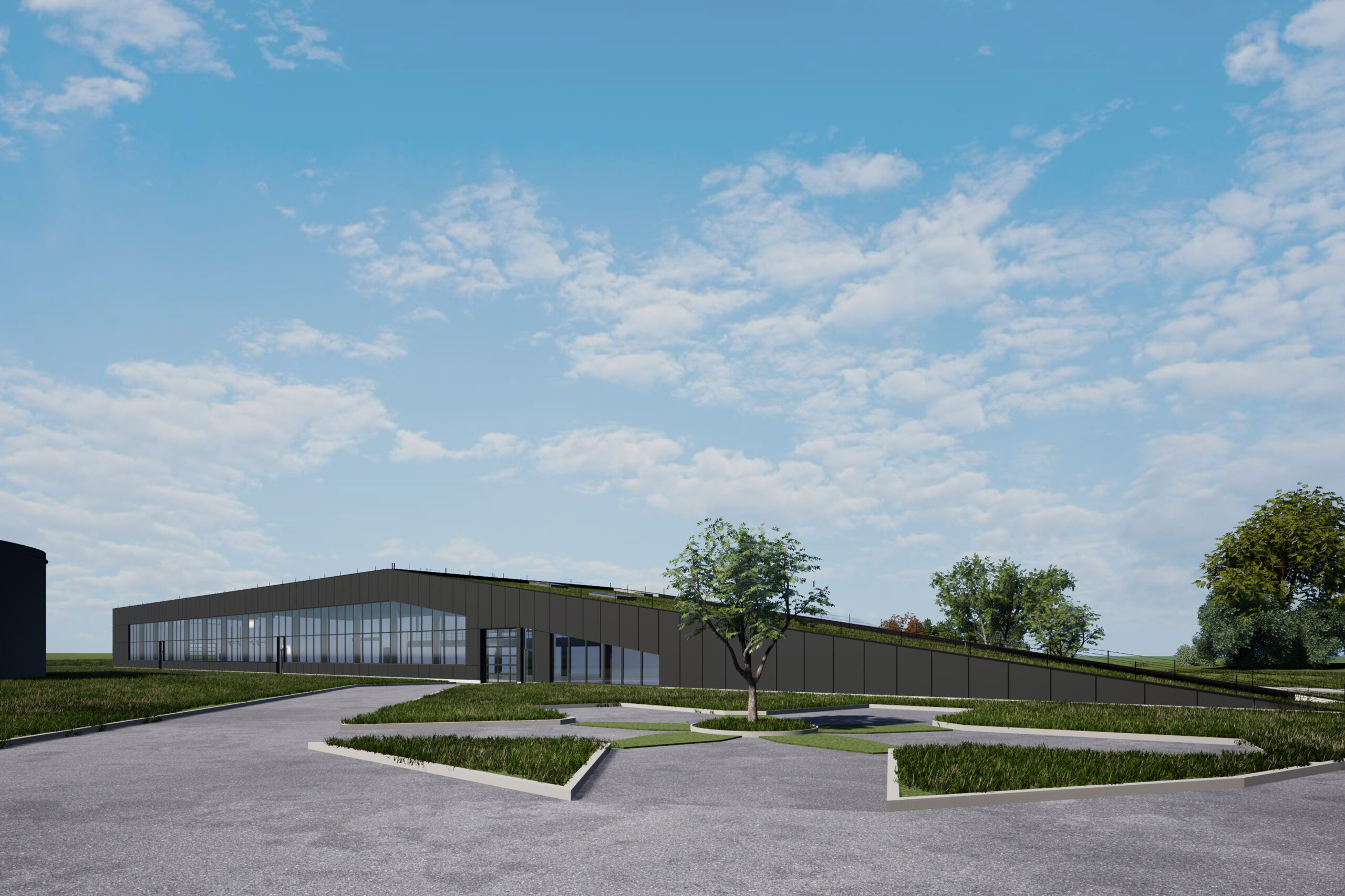 La nueva construcción destaca por sus formas discretas y materiales elegantes. Sus muros oscuros contrastan con grandes ventanales que dejan pasar la luz natural y ofrecen vistas abiertas a los campos. Con 132 metros de largo y 25 de ancho, el edificio consigue disimular su tamaño gracias a la armonía con el entorno. Una pared acristalada de cinco metros de altura ilumina el interior al amanecer, mientras varios tragaluces distribuyen luz durante todo el día, creando un ambiente ideal para los artesanos.
