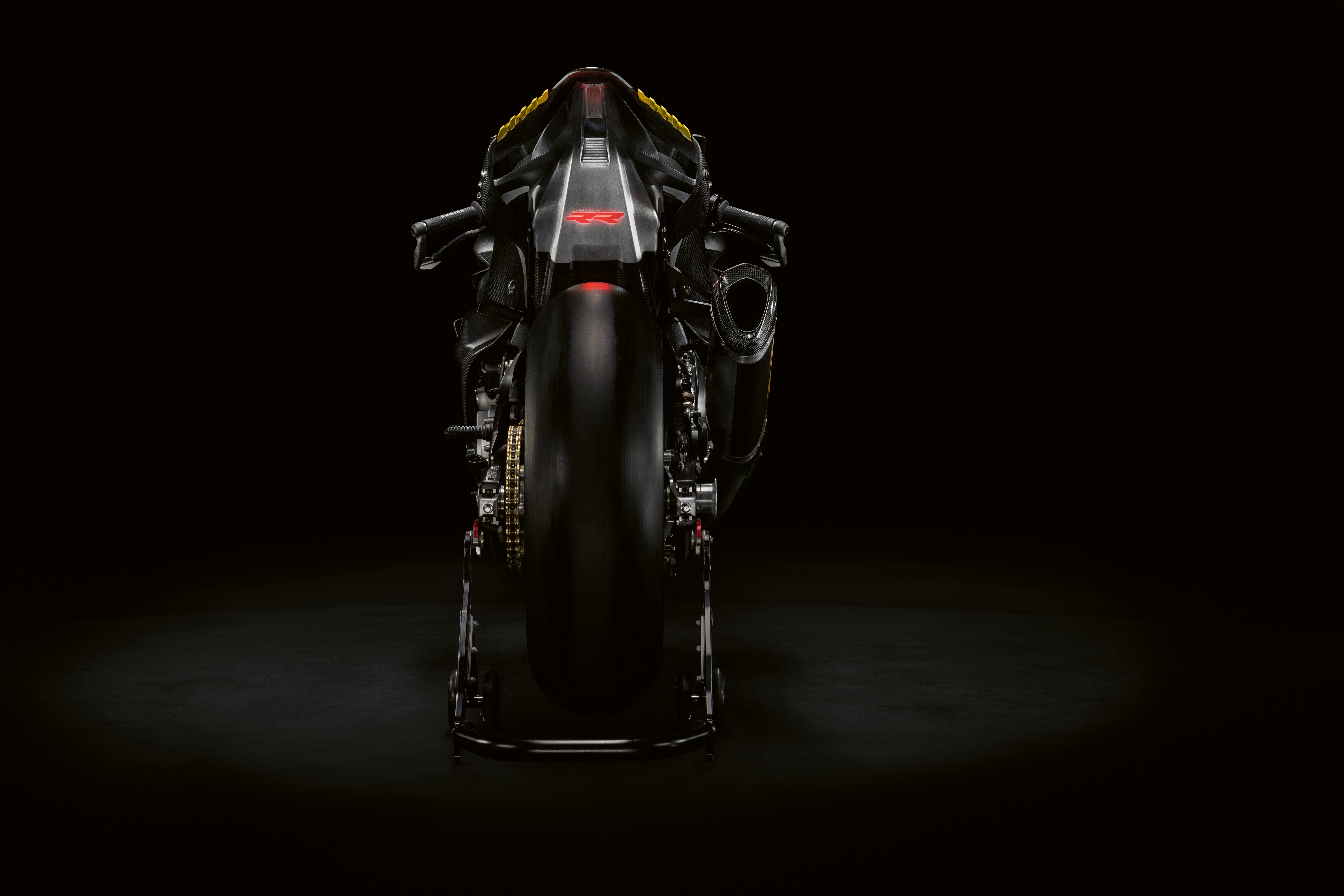 Desde el frontal hasta la parte trasera, todo está diseñado para mejorar la estabilidad a alta velocidad, la agilidad en curva y el rendimiento general. El colín incluye un logotipo RR grabado, mientras que en la zona inferior aparece una versión iluminada del mismo símbolo.