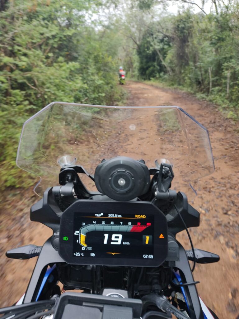 La ruta es en su mayoría por caminos asfaltados, pero también tenemos una brecha nada complicada de aproximadamente 25 kilómetros que te permite jugar con la tracción de la moto y sentirte un poco más aventurero.
