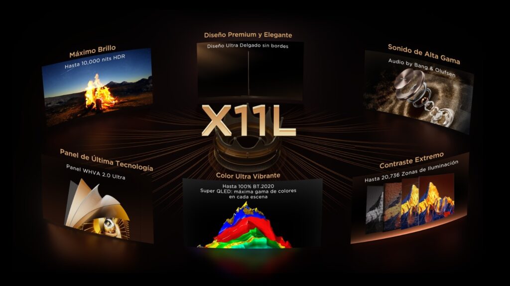 El estandarte de esta nueva colección es el modelo X11L, una unidad que destaca por integrar niveles de brillo poco comunes en el sector comercial. Este panel es capaz de emitir hasta 10,000 nits en HDR, una cifra que garantiza visibilidad y detalle incluso en condiciones de luz ambiental intensa. Para gestionar esta potencia, el equipo cuenta con 20,736 zonas de atenuación local, lo que permite un control preciso sobre el contraste y la profundidad de los negros.