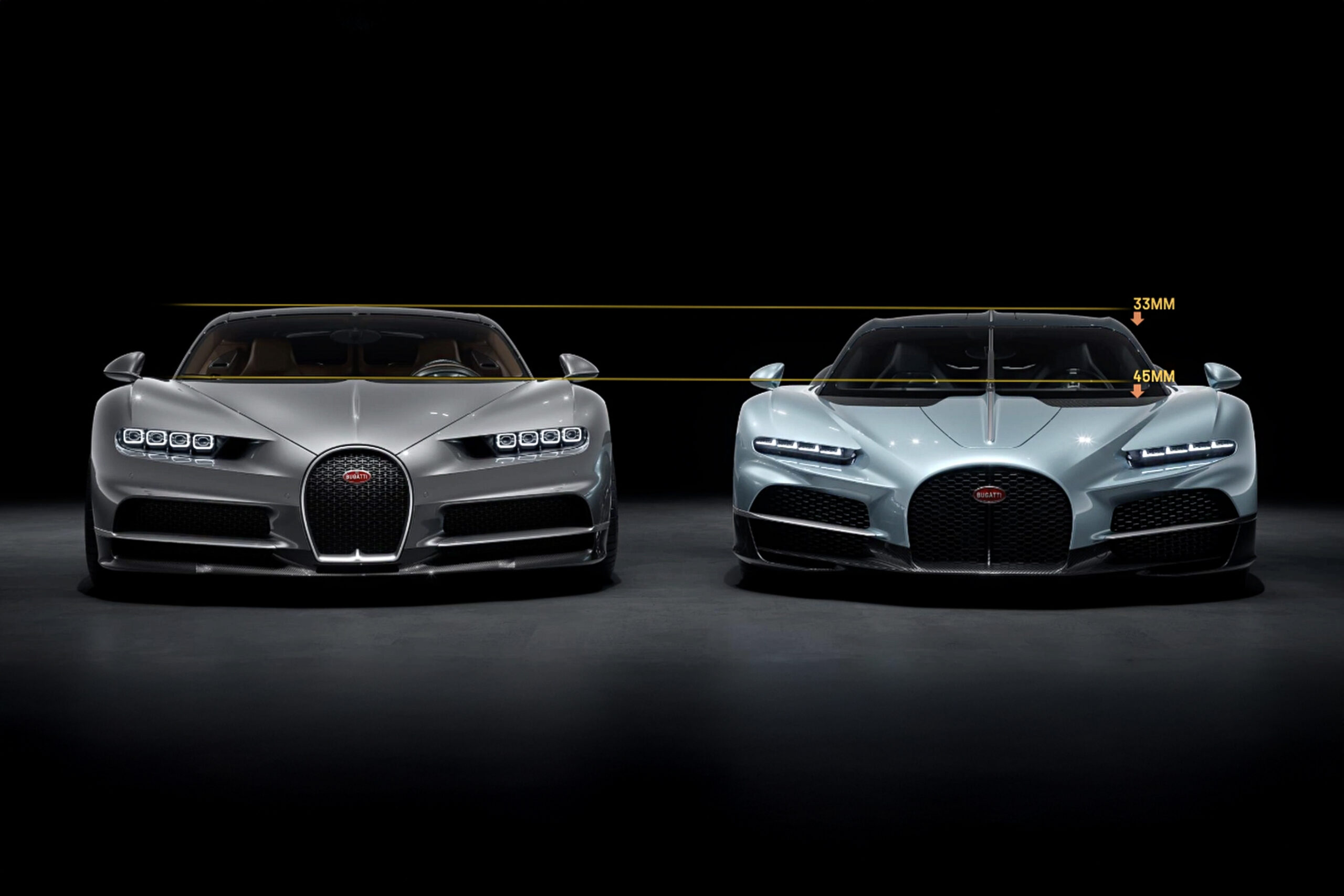 La silueta del hiperauto responde a la forma de una gota de agua: baja altura, superficie frontal reducida y una cabina más estrecha que la de su predecesor, el Chiron. Sin embargo, mantiene el mismo espacio interior. La cabina fue montada 33 milímetros más abajo en el monocasco de fibra de carbono, con los asientos fijados a la estructura y controles ajustables en longitud, lo que otorga ergonomía y control al conductor.
