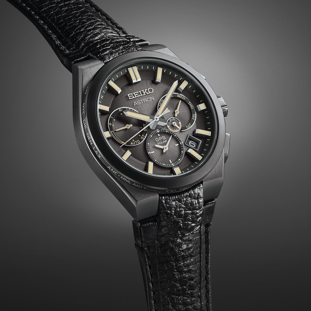 El SSH131, basado en Leon, apuesta por un diseño más sobrio. La correa de cuero negro replica su chaqueta clásica, mientras que la esfera gris con detalles marfil aporta un toque más refinado. El cuerpo del reloj está construido en titanio con un recubrimiento endurecido en negro.